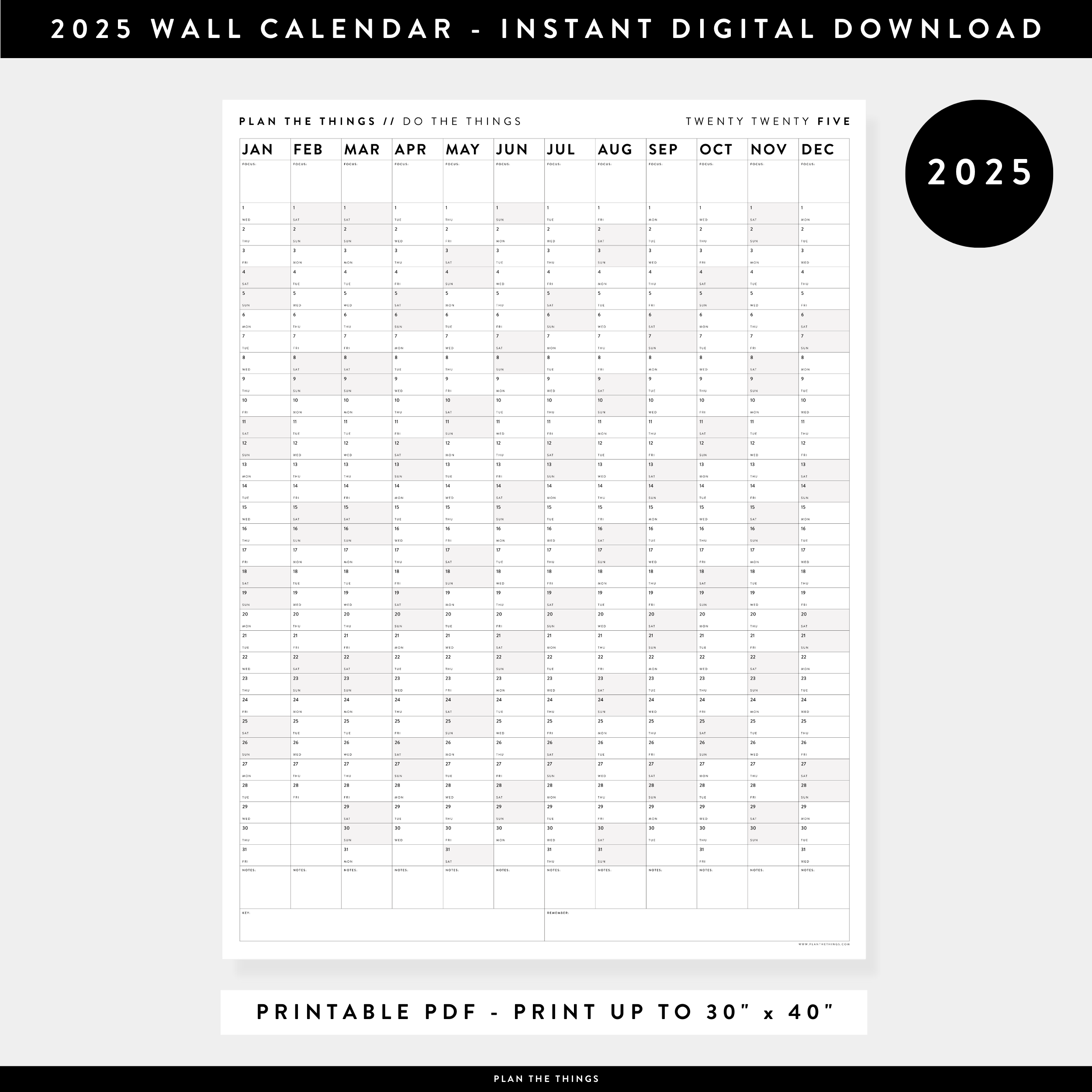 Source : www.planthethings.com2025 Classic Wall Calendar Printable Yearly Planner Black & White